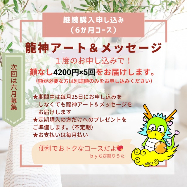 《6か月継続》2025年12月~龍神アート&メッセージ(額なし)申し込み