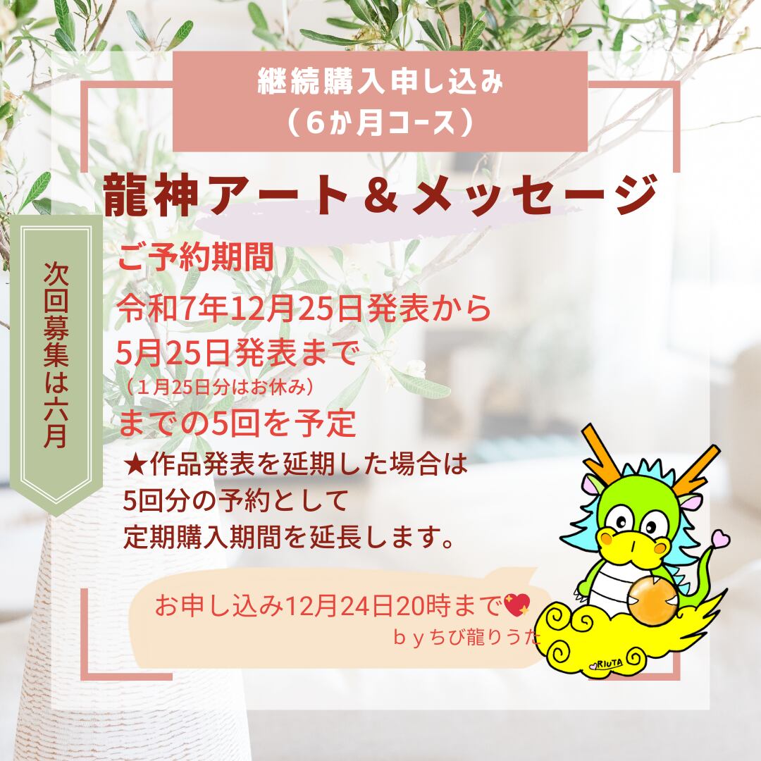 《6か月継続》2025年12月~龍神アート&メッセージ(額なし)申し込み